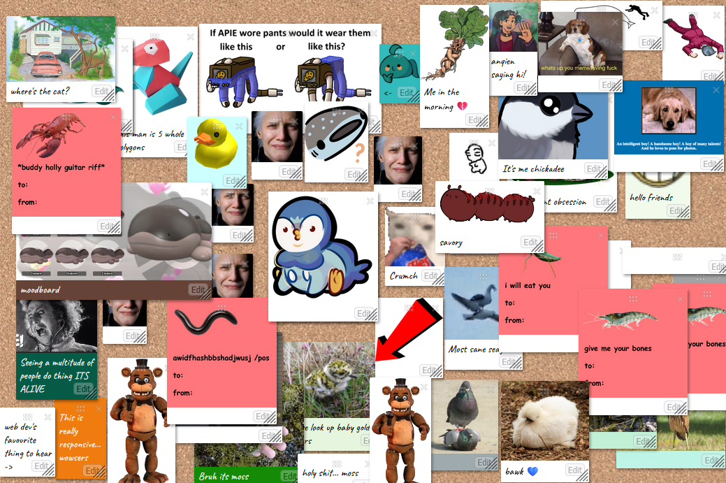 - Experiment 3: Corkboards - Make a real-time collaborative board of polaroids and notes. (Websocket + database, presence indicator test)